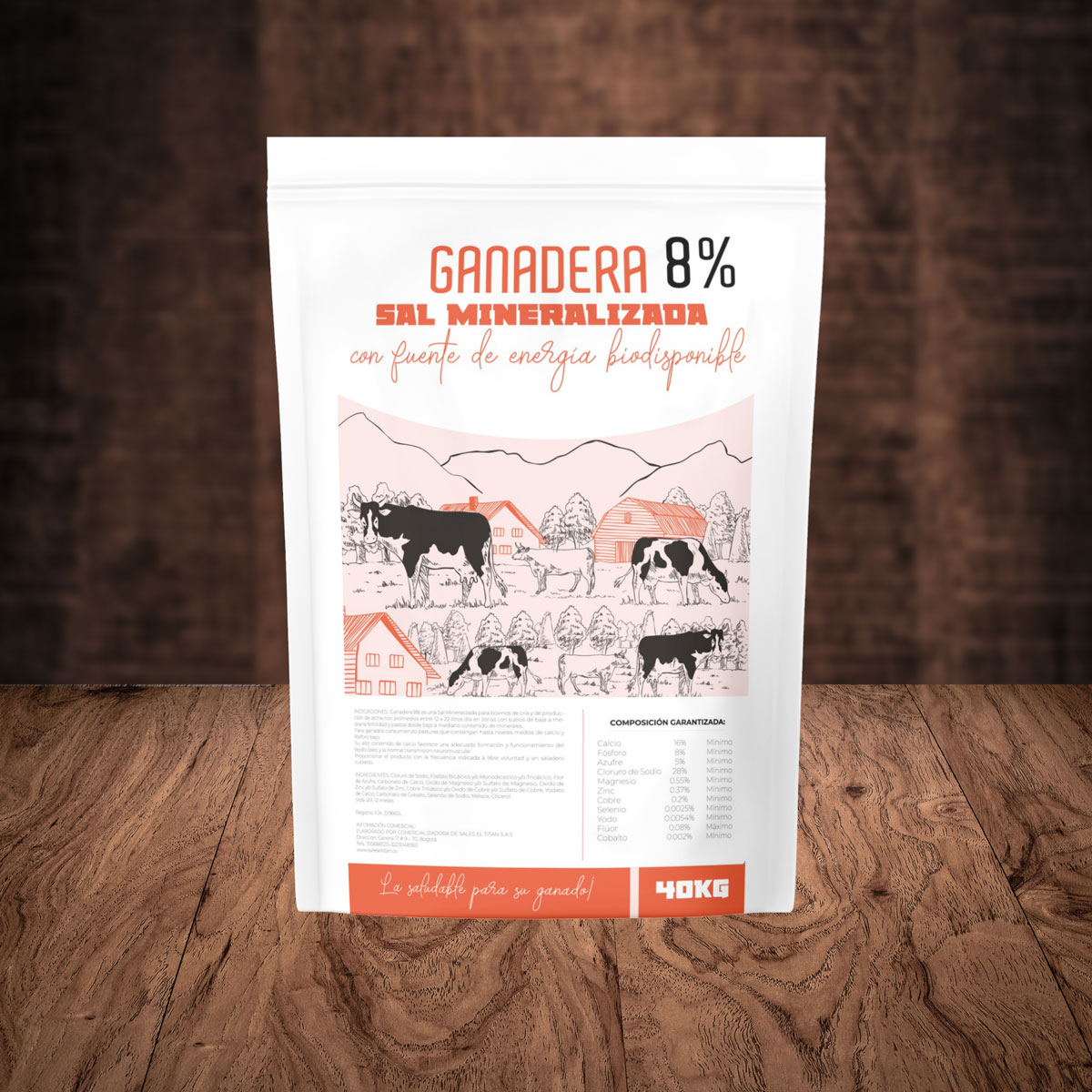 8% es una Sal Mineralizada para bovinos de cría y de producción de leche con promedios entre 12 a 22 litros día en zonas con suelos de baja a mediana fertilidad y pastos desde bajo a mediano contenido de minerales. Para ganados consumiendo pasturas que contengan hasta niveles medios de calcio y fósforo bajo. Su alto contenido de calcio favorece una adecuada formación y funcionamiento del tejido óseo y la normal transmisión neuromuscular.